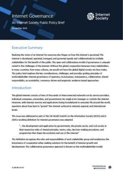 Realizing the vision of an Internet for everyone also hinges on how the Internet is governed. The Internet is developed, operated, managed, and governed openly and collaboratively by multiple stakeholders for the benefit of the public. This open and collaborative model of governance is uniquely suited to the challenges of the Internet. Without this global cooperation between many stakeholders, in many countries, from many cultures, we would not have the global digital society we have today. This policy brief explores the key considerations, challenges, and provides guiding principles of multistakeholder Internet governance of openness, inclusiveness, transparency, collaboration, shared responsibility, accountability, consensus-driven and pragmatic evidence-based approaches.